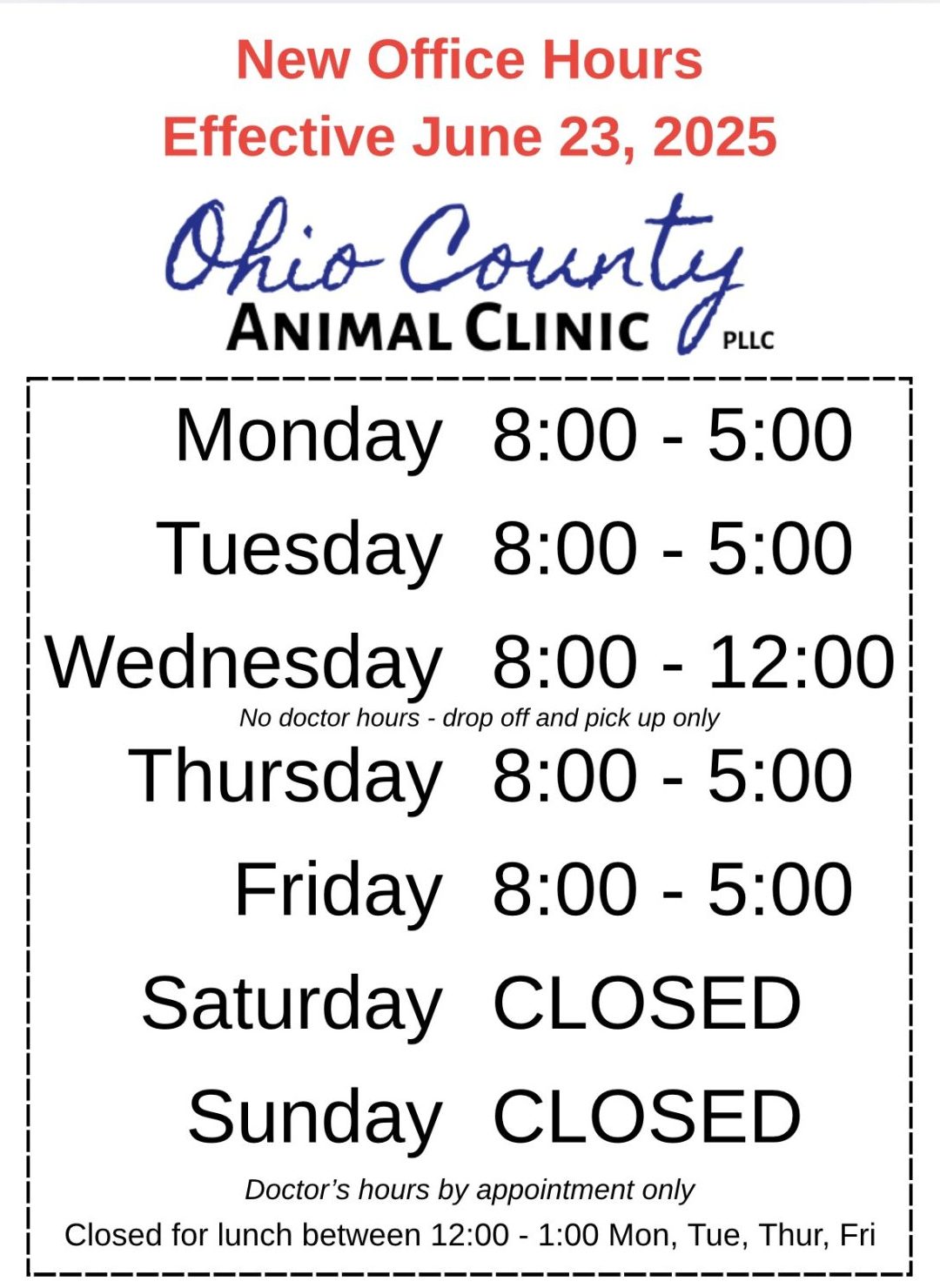 At Ohio County Animal Clinic, PLLC, everyone is considered a leader and an integral member of the health care delivery team. Every day at Ohio County Animal Clinic, PLLC, it is our friendly team’s responsibility to help make your veterinary experience a positive one to ensure that both you and your pet are at ease. In addition to mandatory veterinary knowledge and training, our team is selected for kindness, compassion, patience, professionalism, integrity, and agility.